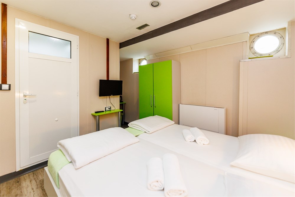 Dvokrevetna soba u Botelu Marina je novouređena, nepušačka soba s brodskim ambijentom. Ima namještaj rađen po mjeri, potpuno opremljenu kupaonicu, klima uređaj, grijanje, priključak za internet (WiFi), udobne krevete te pogled kroz pravi brodski prozor. U sobi su dostupni ručnici i posteljina. Za djecu su na upit dostupni dječji krevetići, a dio soba je prilagođen osobama s posebnim potrebama. Gosti također imaju na raspolaganju privatno parkiralište (uz obavijest), 24‑satnu recepciju, uslugu čišćenja i razne dodatne sadržaje.