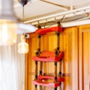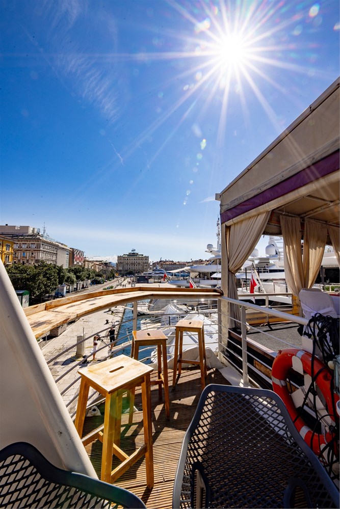 Ambijent: moderno uređenje interijera, topla rasvjeta, pažljiva dekoracija, pogled na luku i more, prirodni materijali u uređenju.
