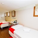 Perfect for families or small groups, our quadruple family room offers spacious and functional accommodation in Rijeka, ideal for seaside holidays and discovering the Kvarner region. Located aboard a unique floating hotel in Rijeka, the room includes four comfortable beds, private bathroom, air conditioning, heating, free WiFi, and a view through a real ship’s porthole. The bed and breakfast accommodation includes a buffet breakfast served daily at Botel Marina's restaurant. Guests enjoy 24/7 reception, daily room cleaning, parking on request, and an optional baby cot. This room perfectly combines hotel comfort with nautical charm, right in the city center.
