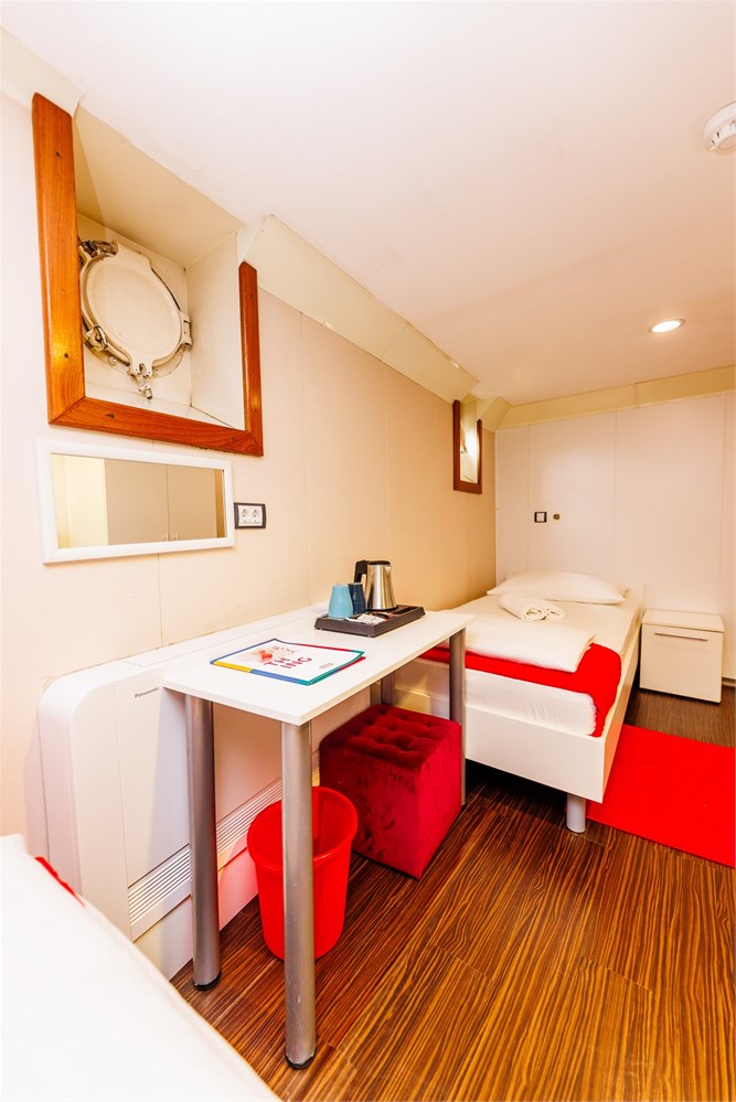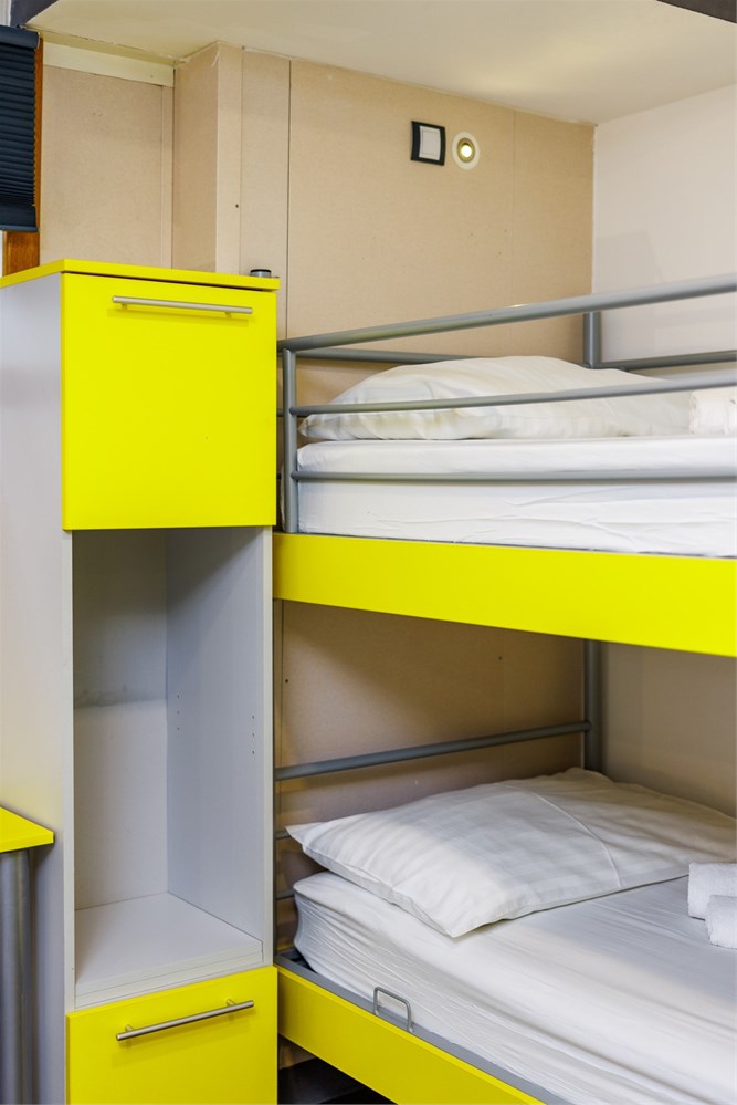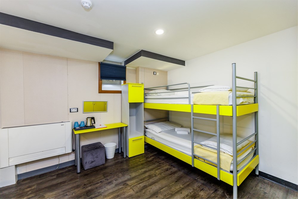 Perfect for families or small groups, our quadruple family room offers spacious and functional accommodation in Rijeka, ideal for seaside holidays and discovering the Kvarner region. Located aboard a unique floating hotel in Rijeka, the room includes four comfortable beds, private bathroom, air conditioning, heating, free WiFi, and a view through a real ship’s porthole. The bed and breakfast accommodation includes a buffet breakfast served daily at Botel Marina's restaurant. Guests enjoy 24/7 reception, daily room cleaning, parking on request, and an optional baby cot. This room perfectly combines hotel comfort with nautical charm, right in the city center.